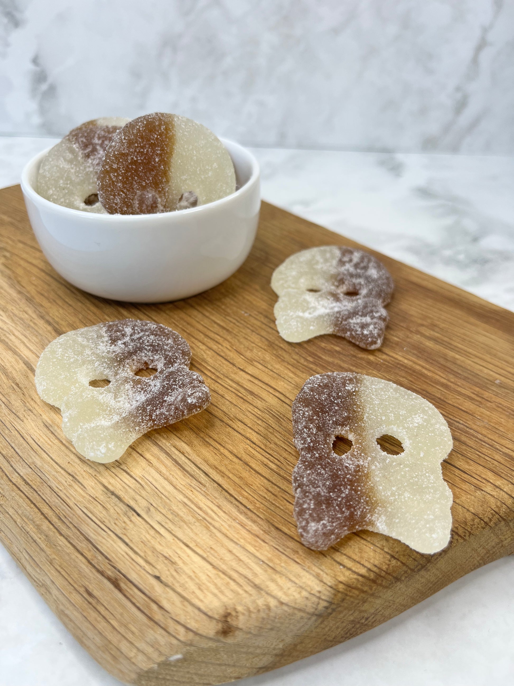 Tantalizingly tangy Cola-flavored jelly skulls - all vegan-friendly!
