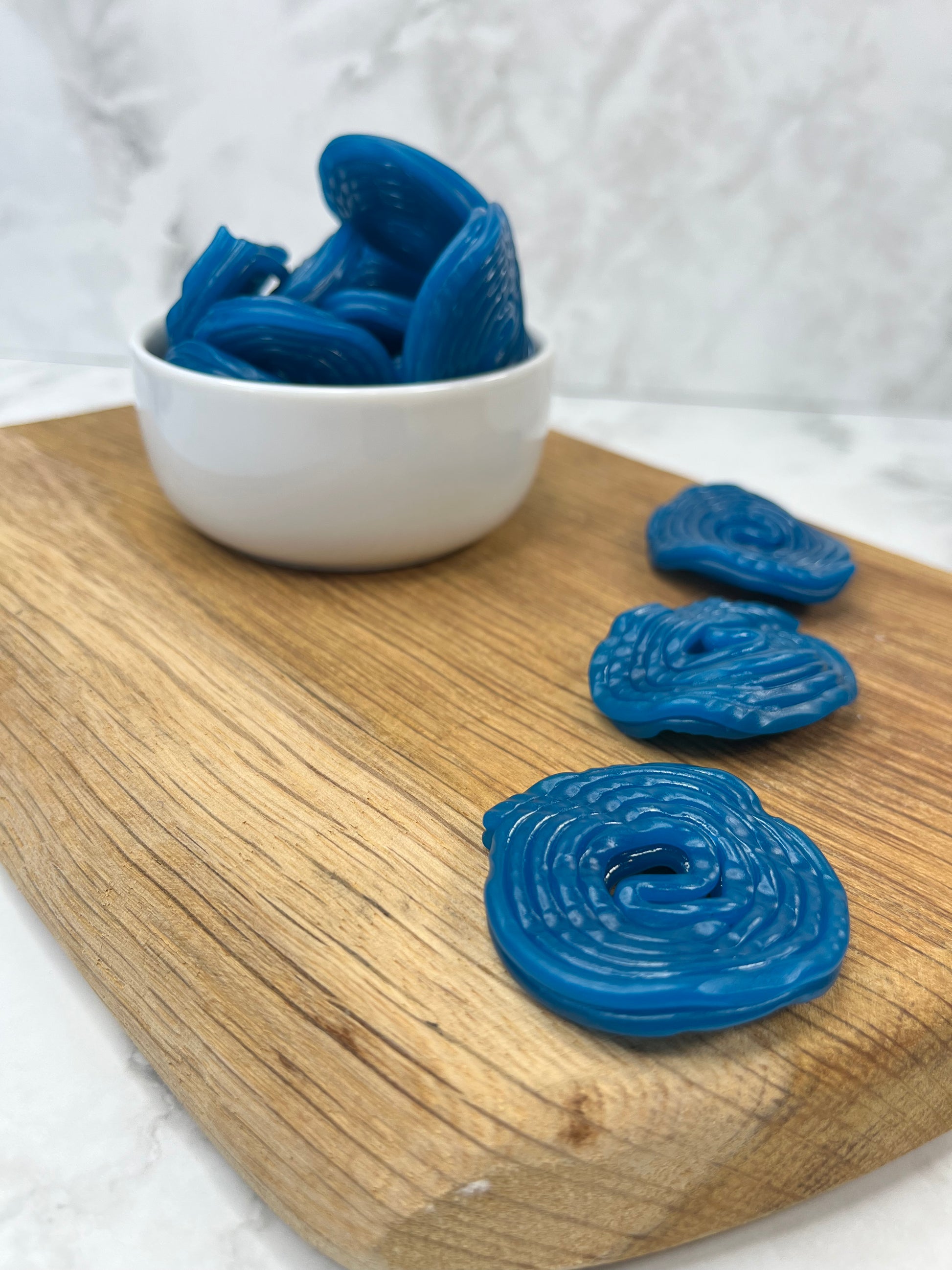 Blue Raspberry flavoured candy wheels. Zoom around your tastebuds with these zippy treats! Get your daily dose of raspberry goodness - and a little extra fun - all in one sweet snack!