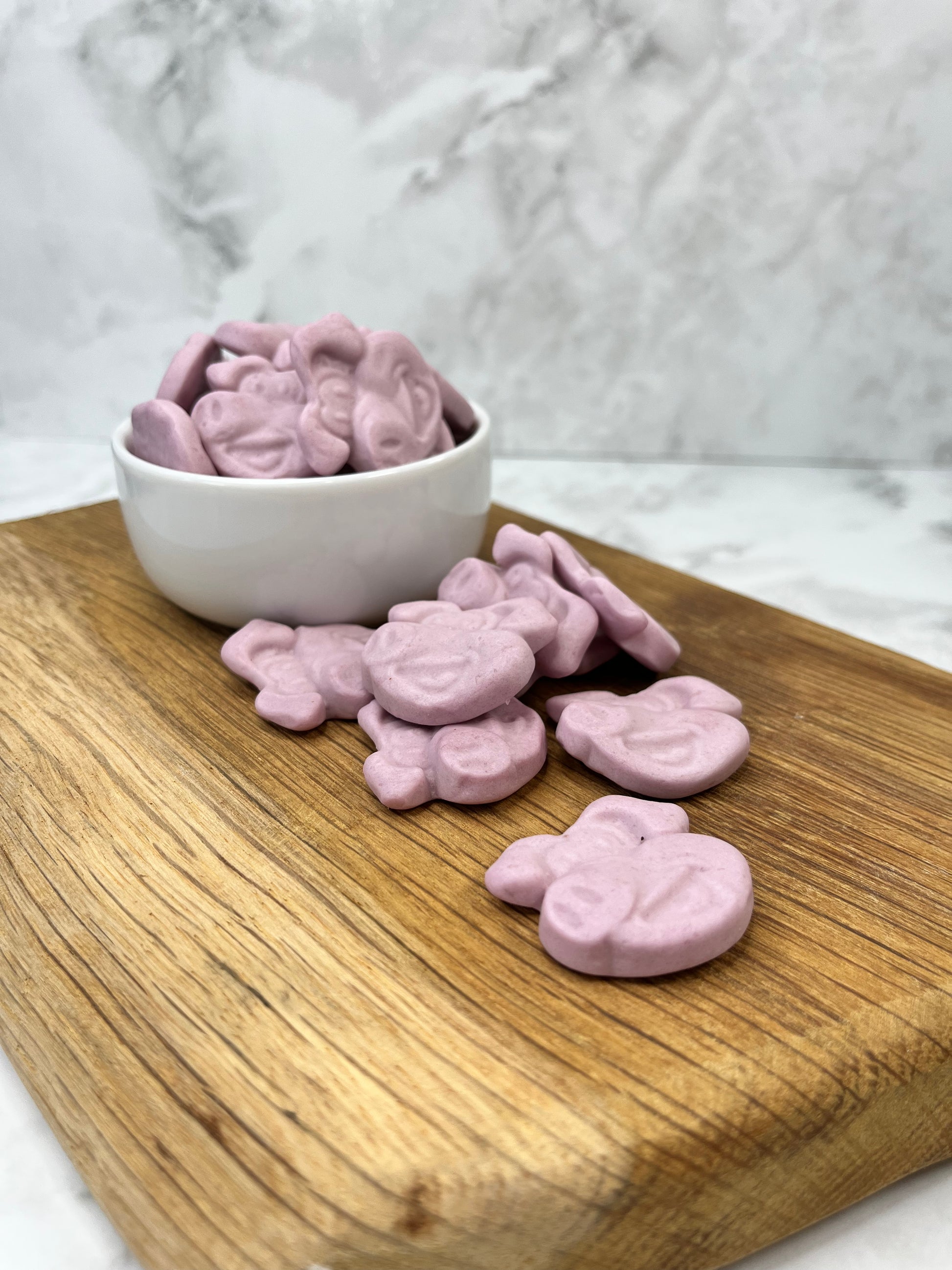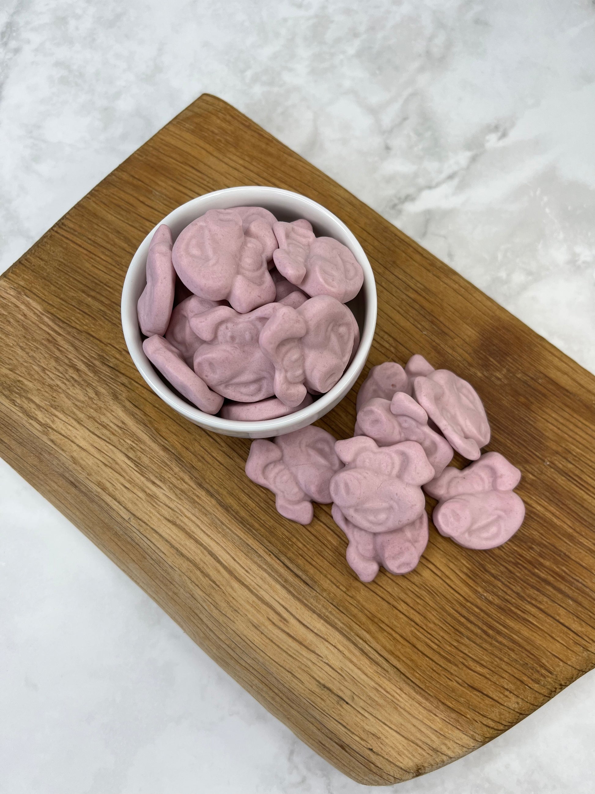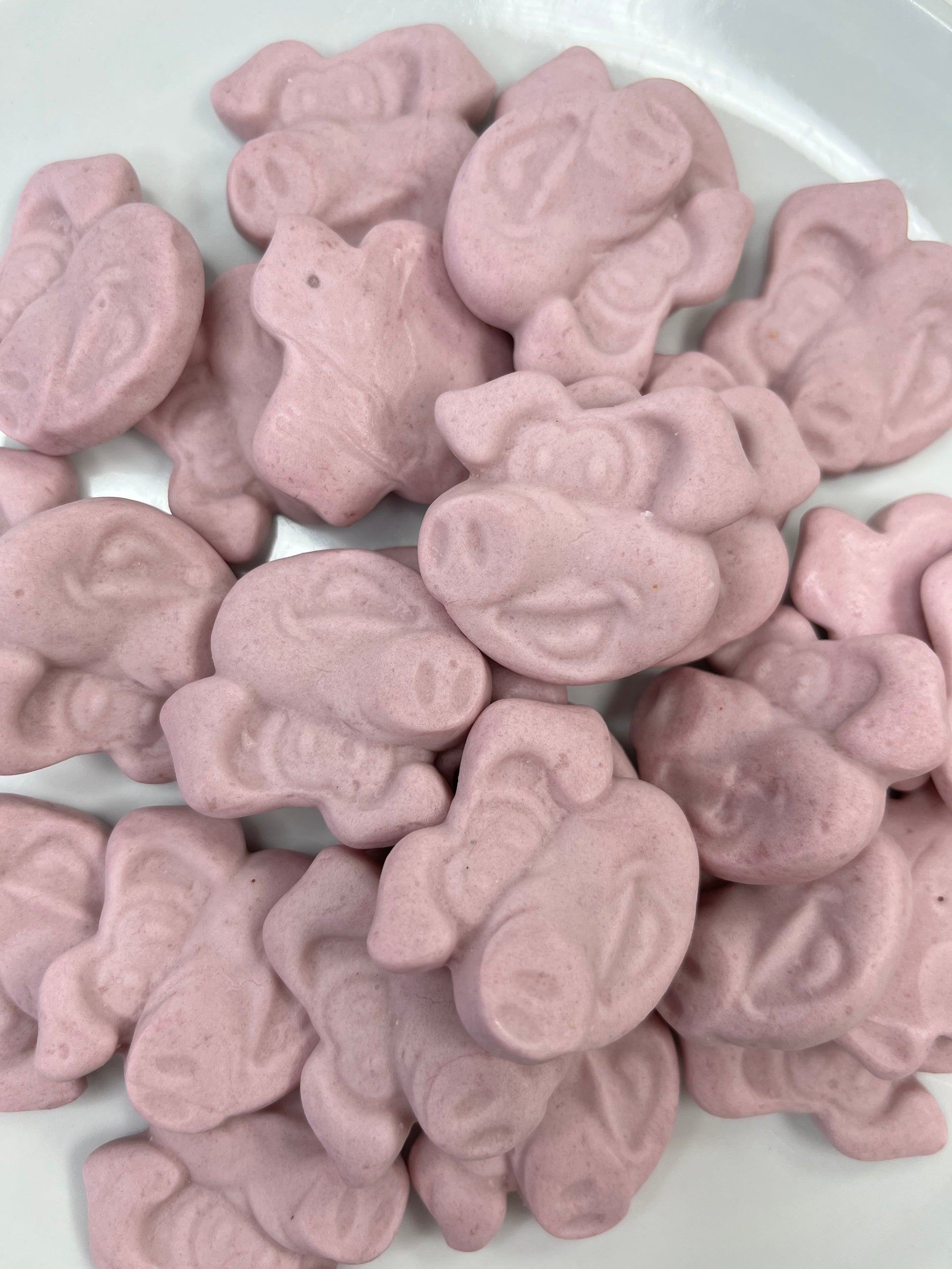 Pig's Mugs, by Swizzels', are a delicious, gluten-free raspberry-flavored foam sweet in a pig-shaped form.